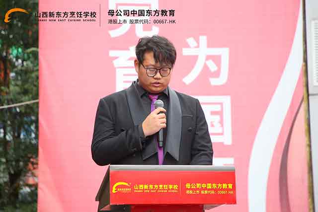 班主任的话语里,满是牵挂与期许。“刚入学时,你们有人连炒鸡蛋都会糊锅,有人捏裱花袋时手不停抖,如今却能端出精致宴席、做出层次分明的甜品,这份成长让我由衷骄傲。”他站在台中央,目光扫过台下一张张熟悉的面孔,语气恳切,“走出校园,要把在校学到的技能练扎实,把对烹饪的热爱揣在心间,保持学习的热情,在行业里稳稳站稳脚跟——记住,山西新东方永远是你们的后盾。”