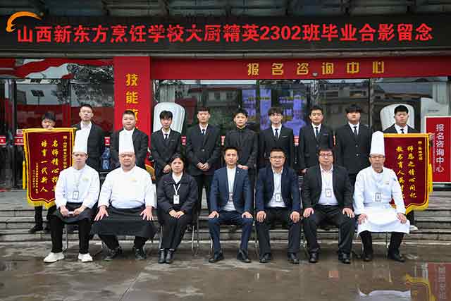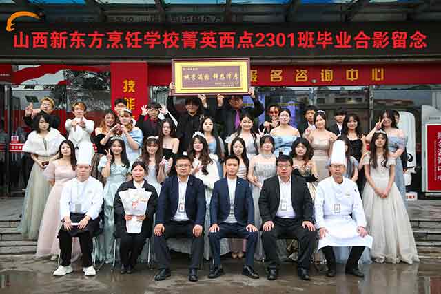 仪式最后,全体毕业生与师长在教学楼前合影留念。镜头定格下一张张洋溢着笑容的年轻脸庞,也定格了他们在山西新东方的成长印记。从这里出发,中餐学子将奔赴各大餐厅的灶台前,用颠勺的力度翻炒人间烟火;西点学子将守在甜品台后,以奶油与面粉勾勒甜蜜梦想;西餐学子将站在精致餐桌旁,用刀叉与酱汁书写优雅篇章。而那些在校园里沉淀的匠心、习得的技艺与藏在细节里的热爱,终将成为他们职场路上最坚实的底气,支撑着他们在餐饮行业的广阔天地里,闯出属于自己的精彩未来。
