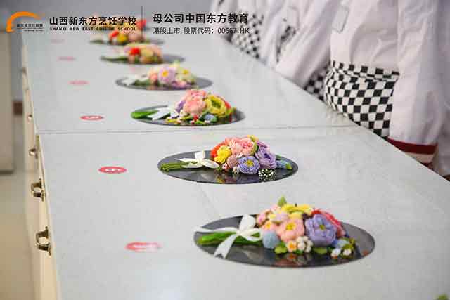 每一款作品的诞生,都离不开日常课堂里的反复锤炼。在山西新东方职校的西点课堂上,韩式裱花教学以实操为核心,从奶油的打发程度、裱花嘴的选择,到花瓣的挤压力度、层次的叠加技巧,老师都会进行手把手指导。学子们在一次次的练习中,逐渐掌握了韩式裱花的精髓,从最初的线条僵硬,到如今的灵活自如,每一个进步都凝聚着汗水与热爱。考核现场,学子们眼神专注,动作娴熟,手腕的力度把控精准,将平日里积累的技能完美呈现在作品之中。