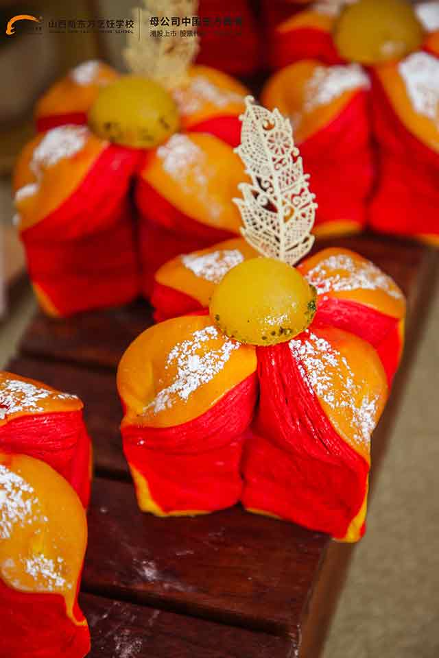 金黄酥脆的丹麦面包层次分明,咬下瞬间奶香与黄油香在口中迸发;软欧包松软有嚼劲,麦香与馅料的融合恰到好处;翻糖蛋糕以细腻笔触勾勒梦幻造型,每一处细节都彰显巧思,宛如可触摸的甜蜜艺术品;法式甜品则凭借精致摆盘与醇厚口感,尽显法式浪漫与专业水准。每一款作品都是真材实料的坚守,更是匠心与创意的极致融合,用实力诠释“在山西新东方,学好西点不是梦”!