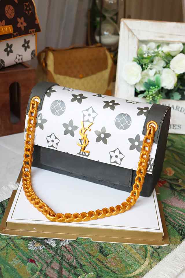 走进作品展现场,仿佛置身高端奢侈品发布会。经典的LV老花图案背包,每一处纹路都细腻复刻,焦糖色糖霜呈现出皮质的温润质感;香奈儿菱格纹手提包,金属链条由糖丝精心锻造,菱格压线均匀工整,灯光下泛着柔和光泽;爱马仕Birkin的锁扣细节栩栩如生,皮革褶皱自然逼真,若非凑近能闻到淡淡的糖霜香气,几乎让人真假难辨。这些作品不仅还原了大牌包包的经典设计,更在尺寸比例、细节处理上做到了极致复刻,每一款都堪称“可食用的奢侈品”。